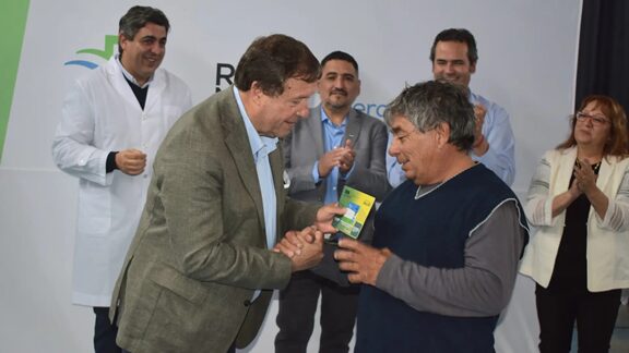 El gobernador, en conjunto con la municipalidad de Huergo, hizo entrega de 70 tarjetas del programa “Río Negro – Presente Salud”, que tiene como objetivo garantizar el acceso a medicamentos para personas con enfermedades crónicas.