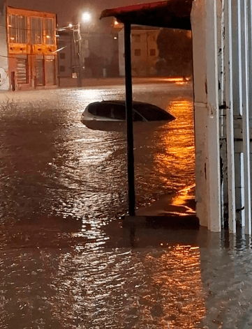 El temporal comenzó durante la madrugada del domingo, causando inundaciones en varias zonas, incluyendo Comodoro Rivadavia. Las lluvias torrenciales dejaron muchas calles anegadas, y varias personas quedaron atrapadas en sus autos debido a la rapidez con la que subió el agua.